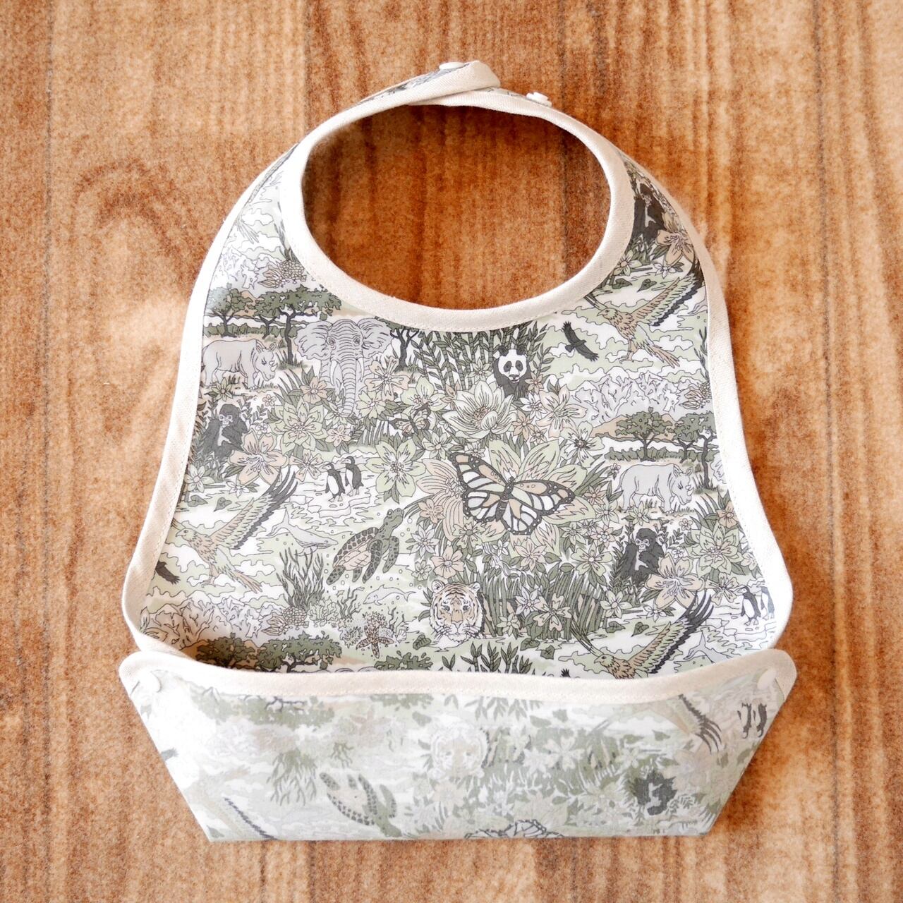 リバティのハリージェームスジャングルで作ったお食事エプロンです。