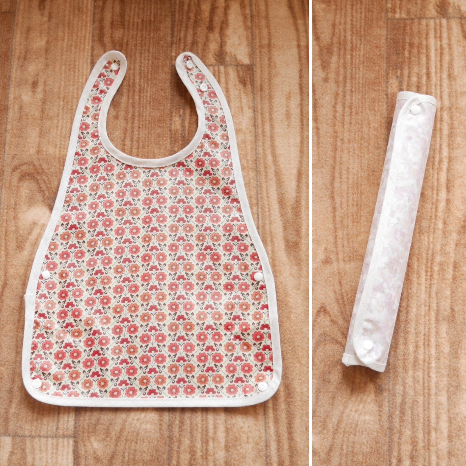 リバティのコーデリアで作ったお食事エプロンです。