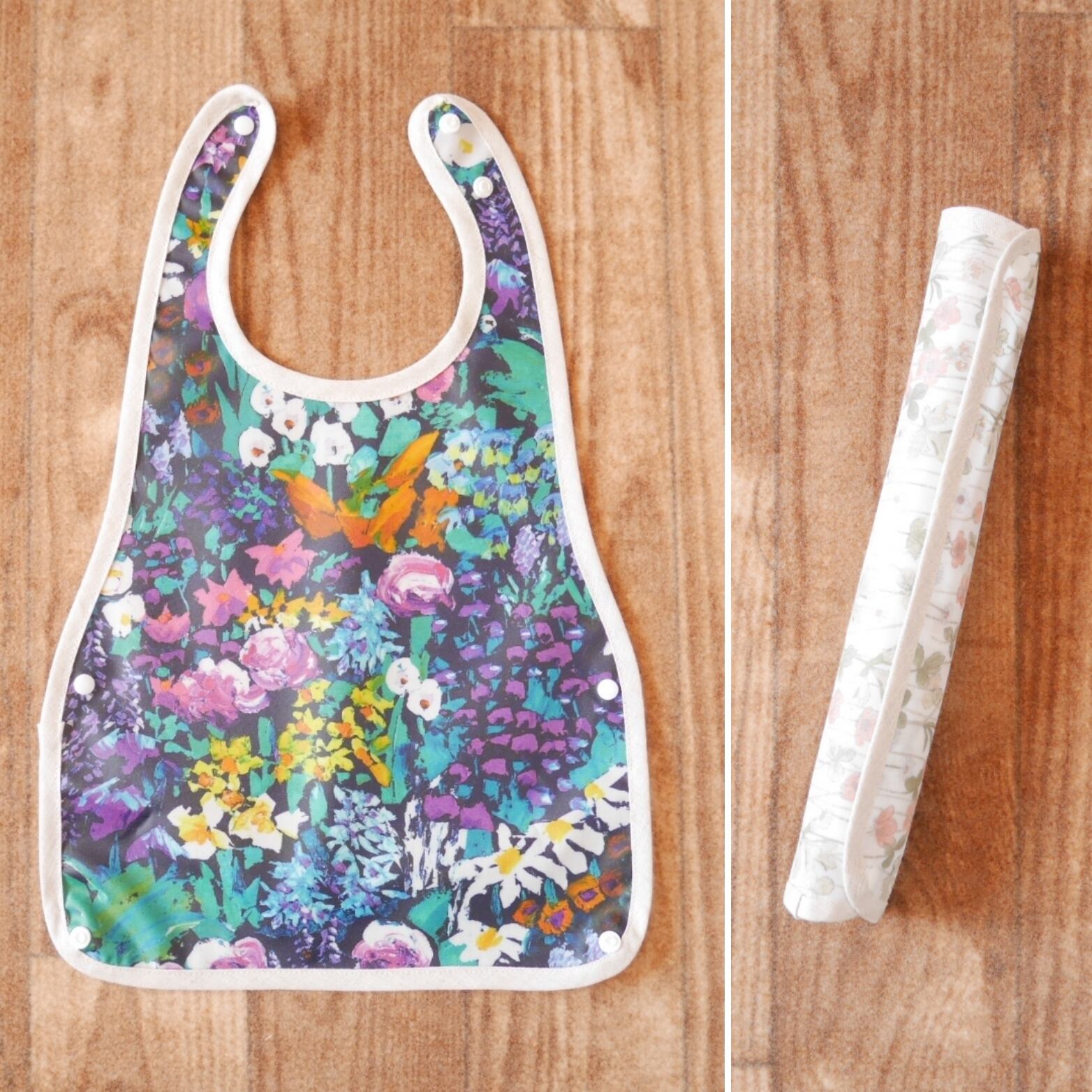 リバティのペインターズメドウで作ったお食事エプロンです。