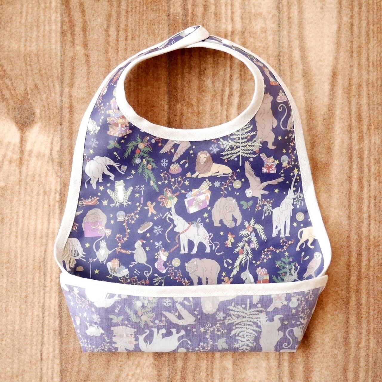 リバティのリバティクリスマスで作ったお食事エプロンです。