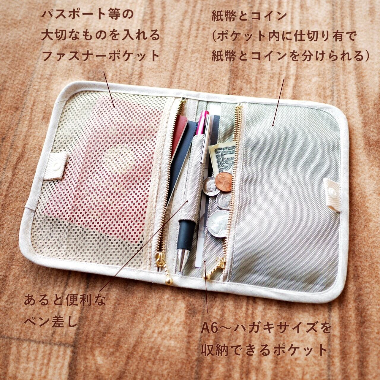 コイン等を入れるファスナーポケット1つ、