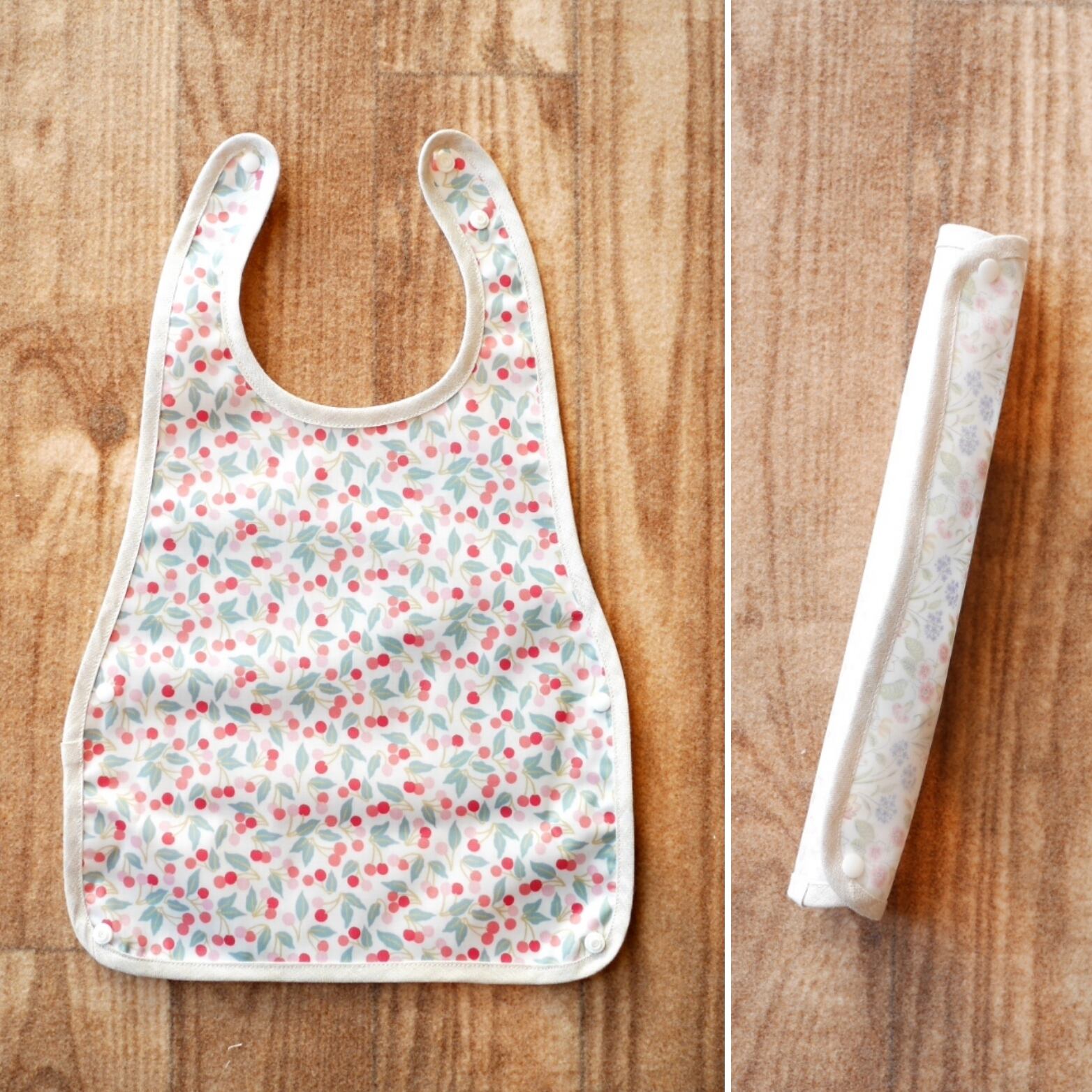 リバティのチェリードロップで作ったお食事エプロンです。